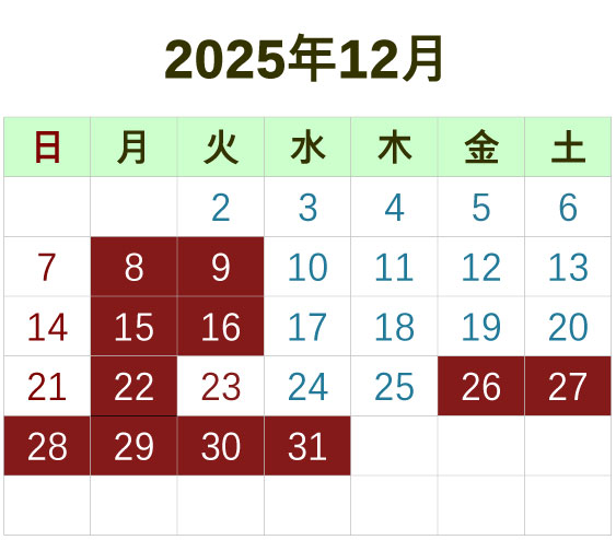 ※2026年1月1日、2日はお休みとなります。